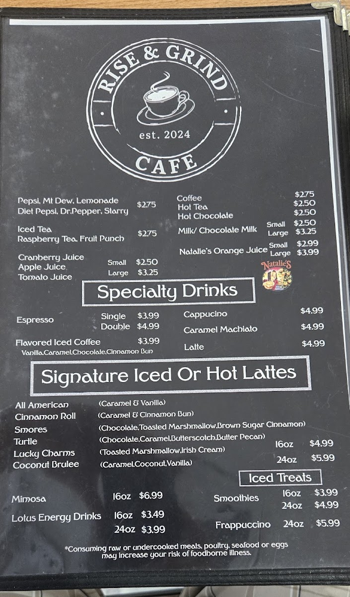 Rise & Grind Cafe Menu